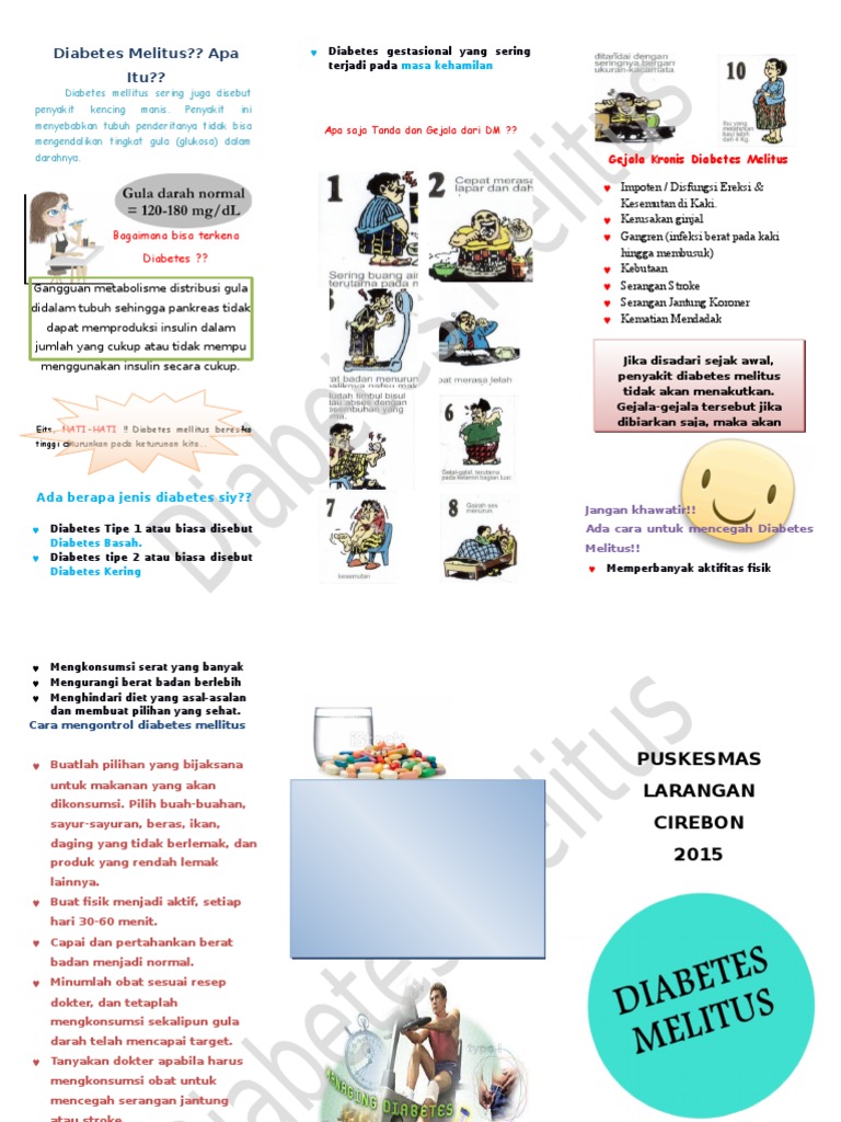 Leaflet Diabetes Melitus Pdf. Share SlideShare. pasien diabetes melitus untuk mencegah terjadinya luka dan membantu melancarkan peredaran darah bagian kaki. The file extension - PDF and ranks to the Documents category.