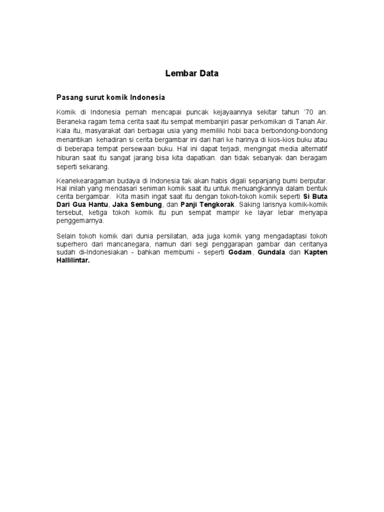 Komik Mahabharata. Cerita di komik ini didasarkan pada pustaka hindu, tidak ada fantasi atau tambahan. Mahabharata adalah sebuah wiracarita yang tak akan lekang oleh zaman.