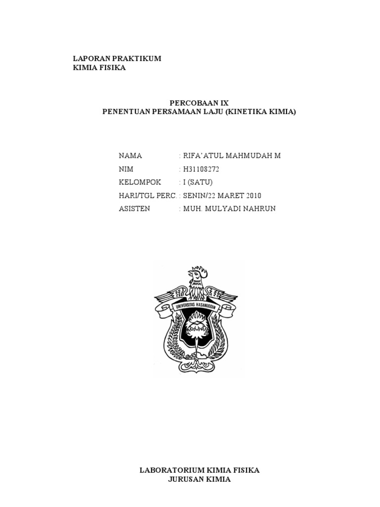 Silabus : Hukum empiris reaksi, metode pengukuran dan pengolahan data kinetika.