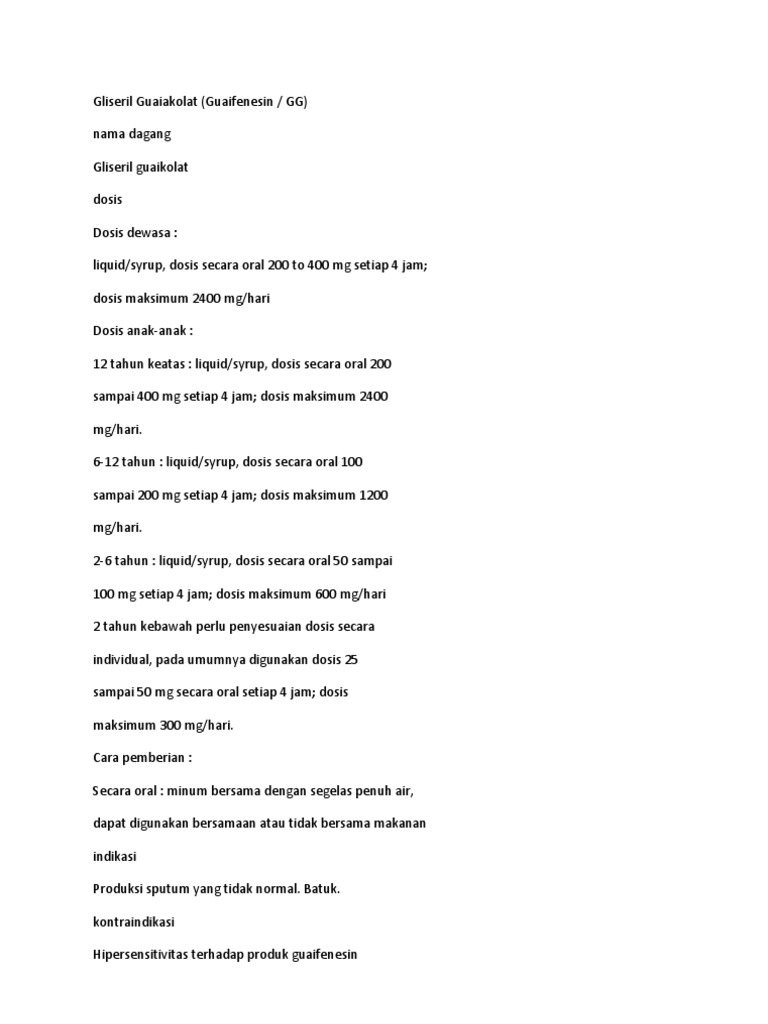 Guaifenesin has no mucolytic action but may reduce bronchial sputum surface tension. Gliseril Guaiakolat digunakan untuk membantu mengencerkan dahak yang dihasilkan. Compare prices for generic glyceryl guaiacolate berlico substitutes.
