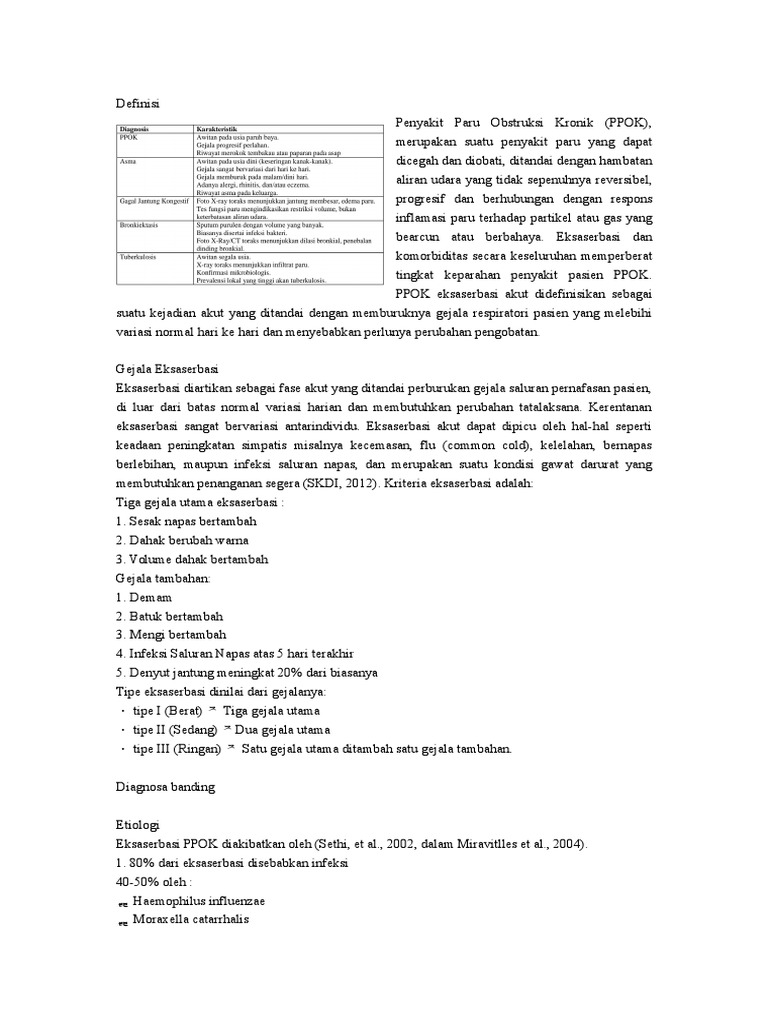Ppok Eksaserbasi Akut Pdf. Antiinflamasi dan antioksidan masih. merupakan terapi adjuvan dan belum diterapkan secara optimal pada kasus PPOK. eksaserbasi akut. Penatalaksanaan PPOK eksaserbasi akut di rumah dan pelayanan kesehatan primer/Puskesmas Download & View Ppok Eksaserbasi Akut as PDF for free.