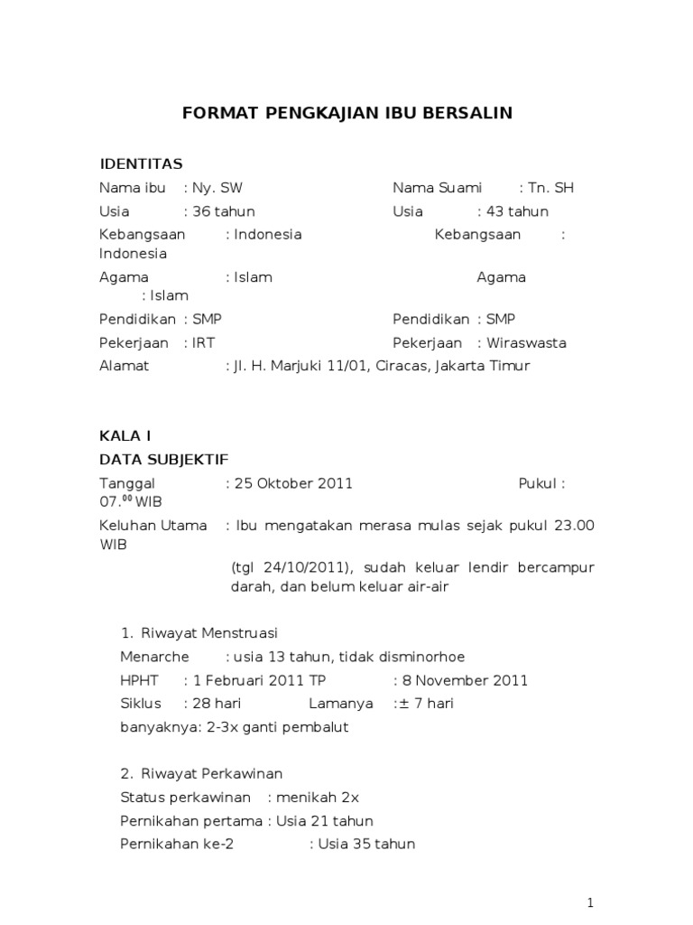 SOAP ibu bersalin dengan PEB di RS X
