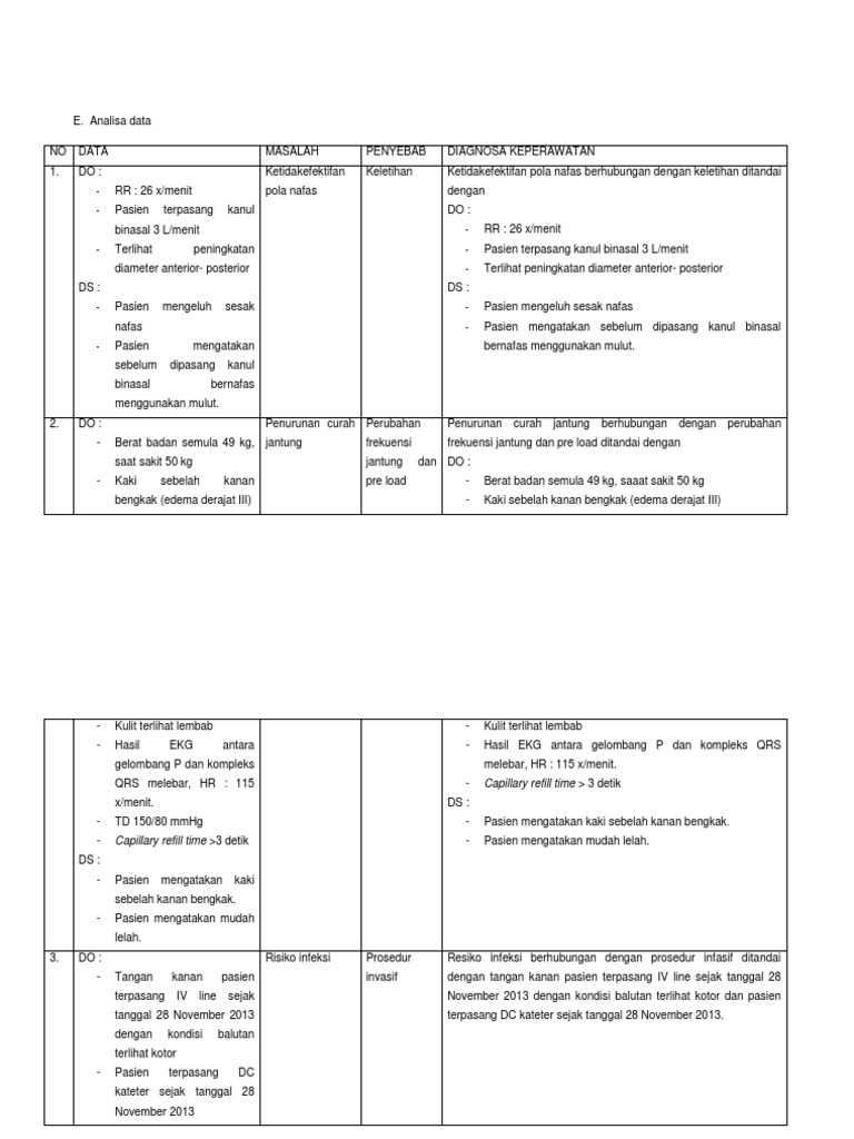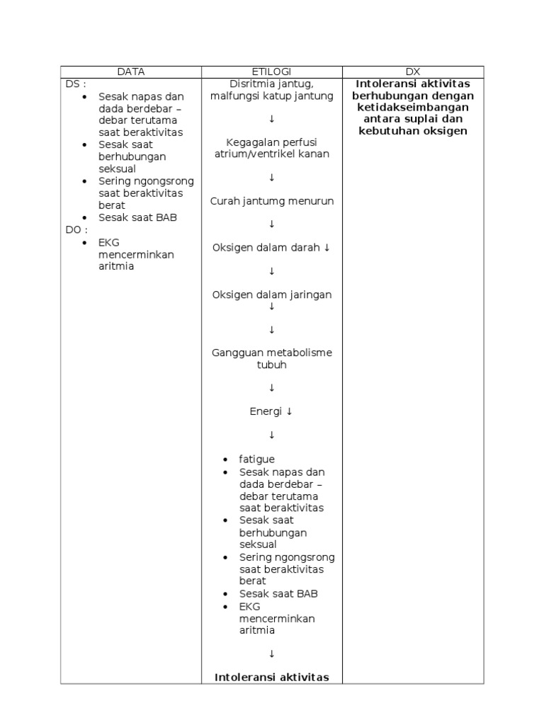 Analisa Data Penurunan Curah Jantung. Curah jantung atau dalam bahasa medis Cardiac Output. Ds : Klien mengeluh sesak napas Do : Klien nampak gelisah Etiologi Masalah Gagal jantung kiri Pola napas tidak efektif Ventrikel kiri tdk mampu Memompa darah dr paru Tek.vena pulmonalis Tek.kapiler paru Perembesan cairan dr Kapiler ke paru Edema.