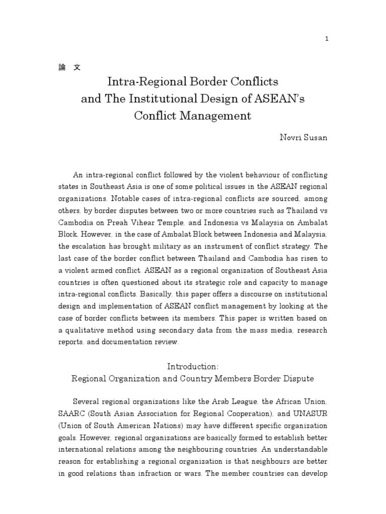 Intra-Regional Border Conflicts and The Institutional ...