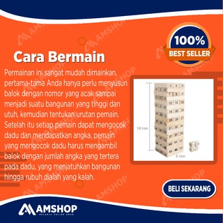 Jual Permainan Uno Stako Kayu 54 Balok dengan 4 Dadu di ...