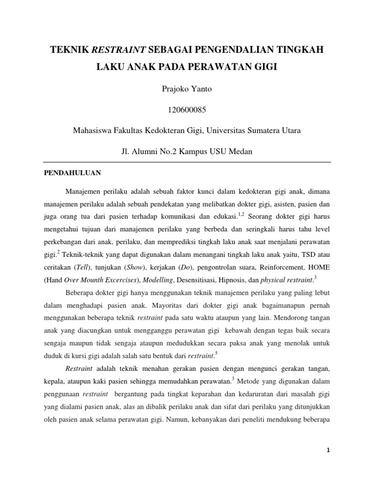 Teknik Restraint Sebagai Pengendalian Tingkah Laku Anak ...