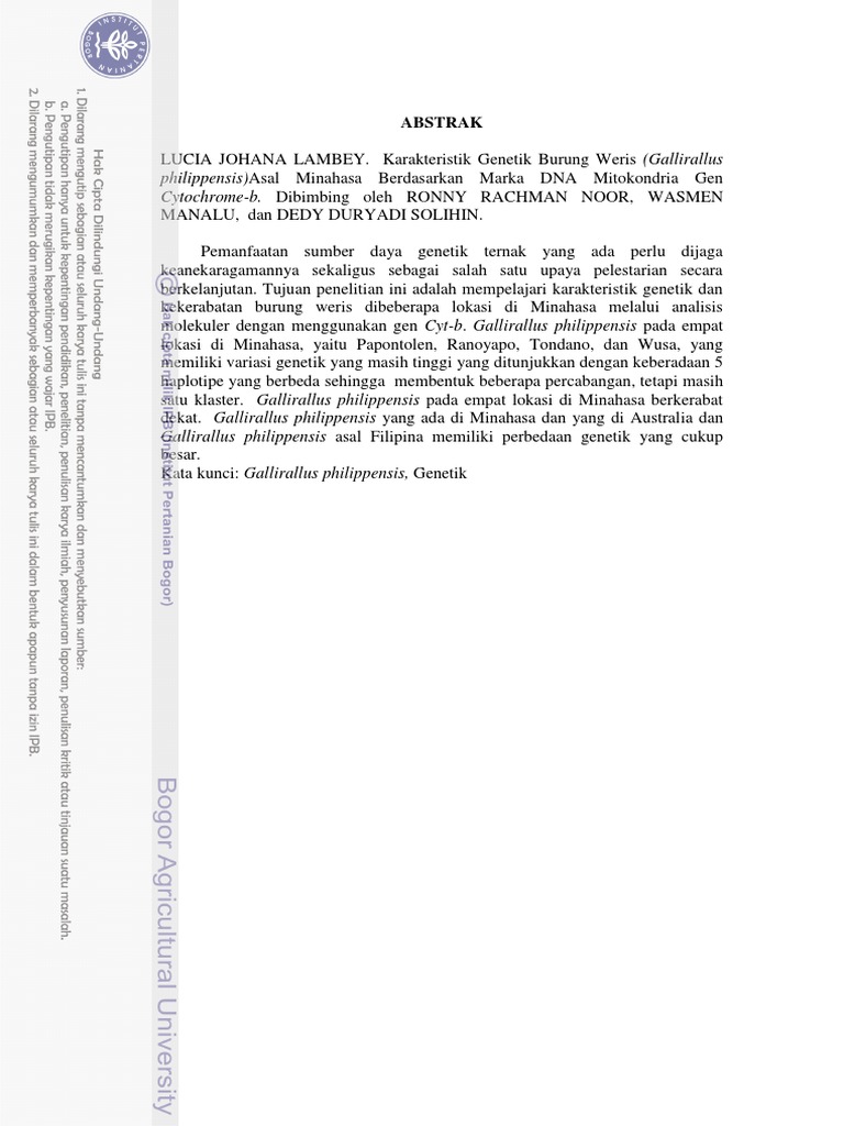 BAB III Karakteristik Genetik Burung Weris (Gallirallus