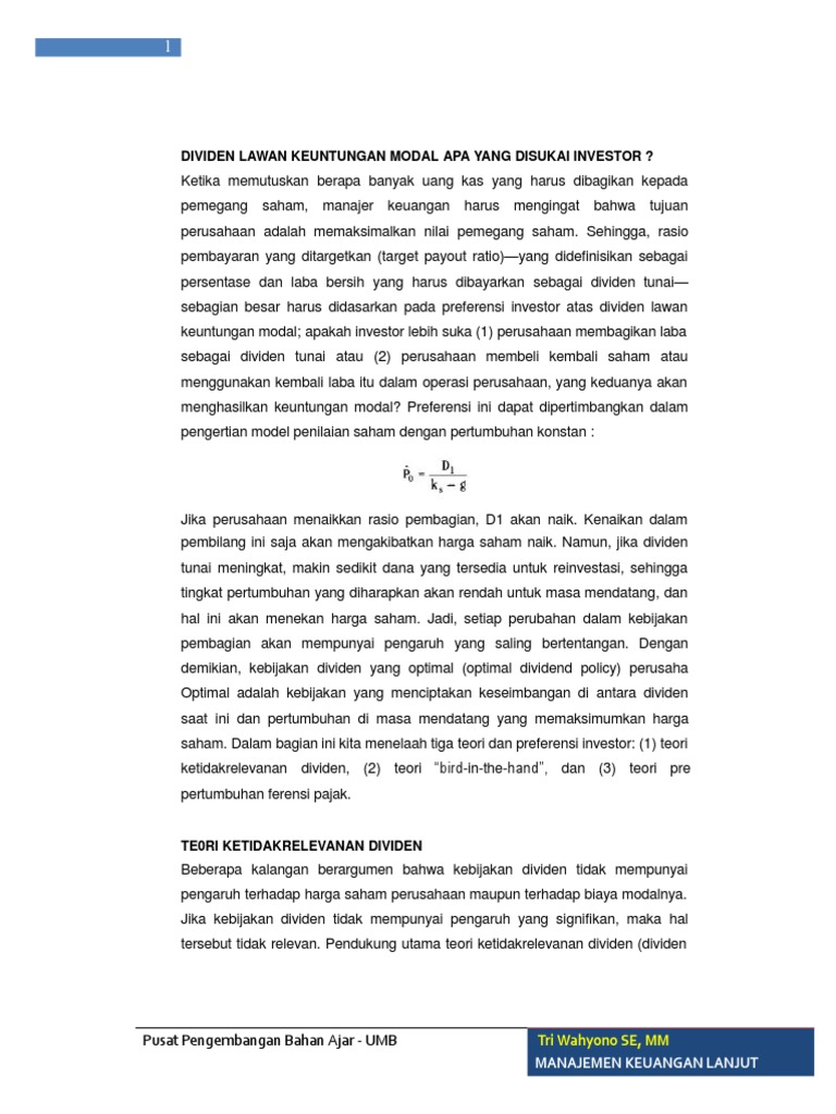 Dividen Lawan Keuntungan Modal Apa Yang Disukai Investor ...