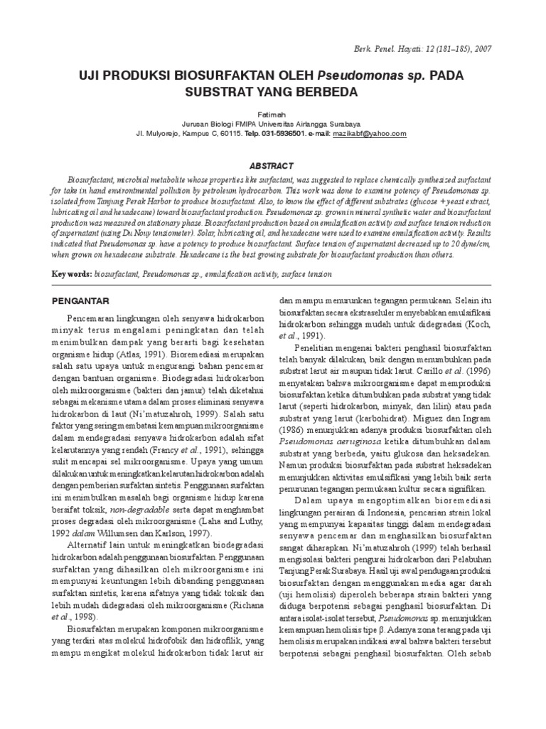 Potensi Bakteri Penghasil Biosurfaktan Sebagai Frothing ...