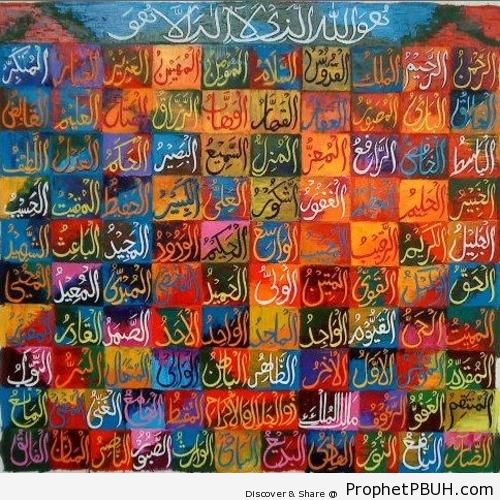 Lukisan Asmaul Husna. Asmaul Husna - Asmaul Husna ialah nama-nama Allah yang ada dalam Al-Quran. Nadlom Asmaul Husna merupakan serangkaian Asmaul Husna (nama-nama Allah) Di samping teks dalam bahasa Arab, tersedia juga dalam tulisan latin dan terjemah, serta.